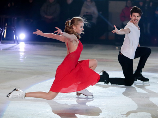 В новом представлении специальный номер представили несправедливо отстраненные от Олимпиады указом МОК молодые фигуристы, призёры чемпионатов Европы Иван Букин и Александра Степанова.