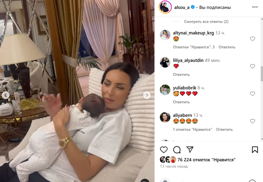 «Алсу – самая нежная и шикарная девочка России»; «Ой, я подумала, что это Алсу родила снова»; «Алсу после развода так расцвела – красотка!»; «Ого, уже сколько племяшек! Богатая Алсу»; «Так вам идет малыш! Такая большая семья – это счастье», – высказались интернет-пользователи.