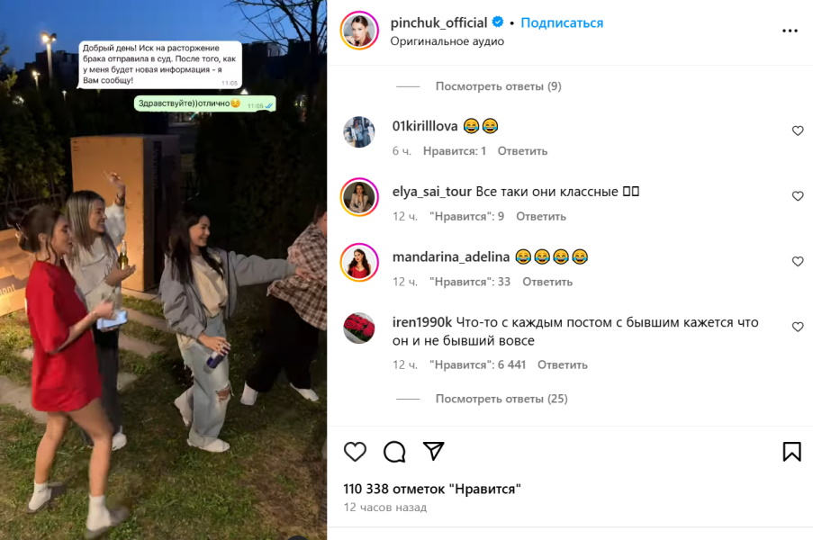 Девушка устроила дружеские посиделки, сплясав перед смущенным мужем под песню Люси Чеботиной «За бывшего». В какой-то момент эмоции достигли накала, и Ирина вдруг прокричала: «Я поднимаю тост за своего бывшего! Какие обиды? Мы же взрослые люди. Хочу пожелать всего наилучшего, но лучше меня в твоей жизни не будет!» Не исключено, что таким образом она в очередной раз попыталась пристыдить Арая за предательство.