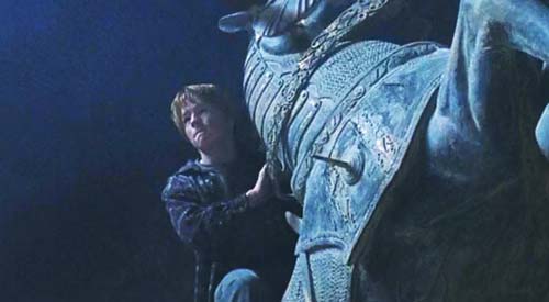 С планировкой Хогвартса происходят какие-то перипетии. К третьей серии домик Хагрида переехал. В первом фильме Хагрид играет на дудочке, сидя у себя на крыльце, и домик при этом стоит прямо у школьного двора. А вот в третьей серии уже нужно пройти по мосту и потом спуститься с верескового склона. И лестницы, меняющие направление, что-то больше не попадаются.