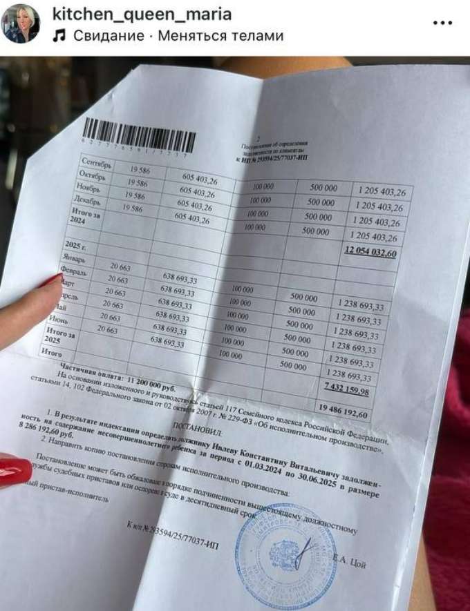 Однако оказалось, что Ивлев задолжал бывшей жене. Мария вышла на связь в личном блоге и показала истинное положение дел. Выяснилось, что Константин в какой-то момент прекратил финансовую поддержку дочери от первого брака. Если данные не врут, то с 2024 года Ивлев больше не переводил нужную сумму на счета бывшей жены. Дошло до того, что долг накапал на 19 миллионов рублей.