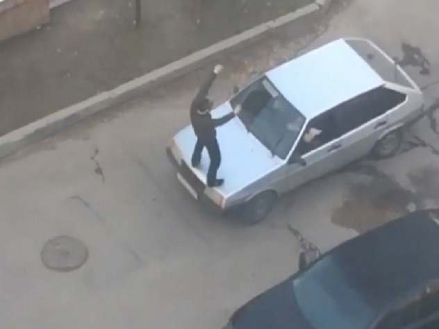 Причем из видео не очень понятно: то ли водитель «девятки» заодно с танцором и сам катает его на капоте, то ли, наоборот, пытается избавиться от слишком навязчивого юноши, но делает это осторожно, чтобы не сбросить его жестко на землю.