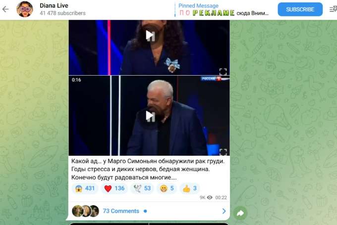 Слухи о раке у Маргариты Симоньян быстро разнеслись по Сети