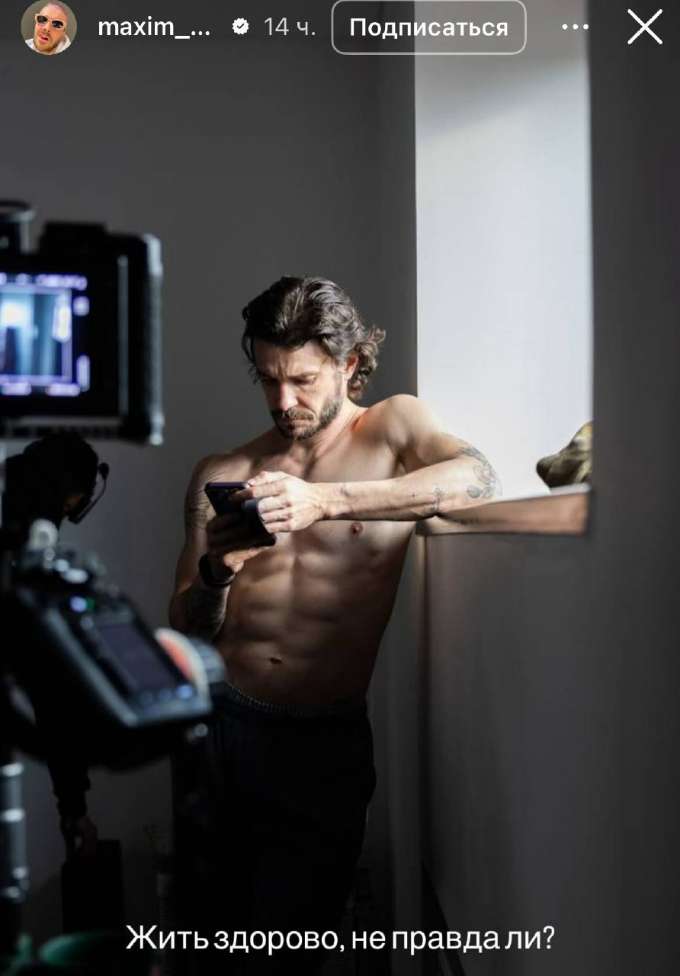 Но если про жену Елизавету Боярского и про их детей Матвеев редко говорит в публичном поле, то вот кадрами со съемок актер часто показывает в личных блогах. Так, к примеру, несколько часов назад Максим выставил в разделе Stories микроблога в Instagram** собственную новую фотографию. На снимке муж Боярской обнажен по пояс. При этом кадр со светом выставлены таким образом, что все внимание привлекает только накаченный торс звезды «Триггера».