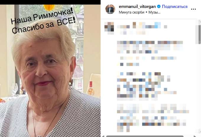 Сообщение о смерти матери Ирины Млодик опубликовано в личном блоге Эммануила Гедеоновича в Instagram**. Пост был сопровожден фотографией ныне покойной тещи артиста.