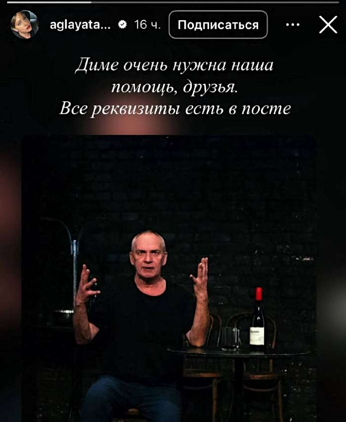 И все это время Аглая никак не проявлялась в социальных сетях. Сейчас же она вышла на связь и по очень важной причине. Актриса опубликовала фотографию коллеги в личном блоге в Instagram*. В разделе Stories звезда сообщила, что у 63-летнего Дмитрия Поднозова («Тайны следствия», «Мажор») онкологический недуг.