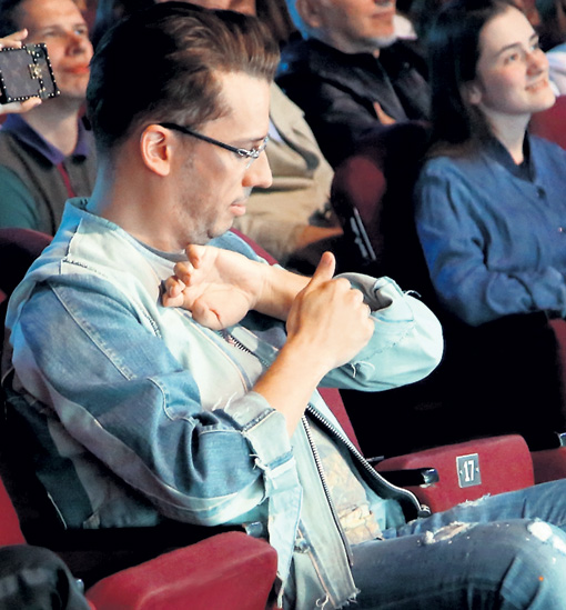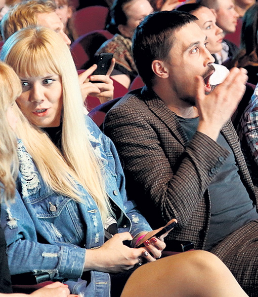 На церемонию Дима Билан пришел в компании блондинки, наряженной в стиле 90-х: потертая джинсовка и чудовищно короткое мини. Девушка весь вечер развлекала певца болтовней, но он все равно периодически зевал. То ли девчонка утомила, то ли шоу было скучным, то ли по невесте Инне скучал.