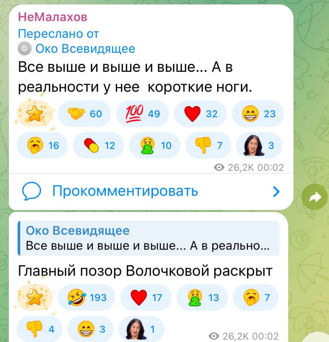 Но претензия к снимку Анастасии возникло из-за ее ног. Один из интернет-пользователей при взгляде на фотографию звезды отметил следующее: «Все выше и выше и выше… А в реальности у нее короткие ноги». Telegram-канал, в котором всплыл нашумевший кадр с Волочковой, не преминул съехидничать: «Главный позор Волочковой раскрыт». Если все действительно так, то в соцсетях звезда тщательно скрывает этот факт.