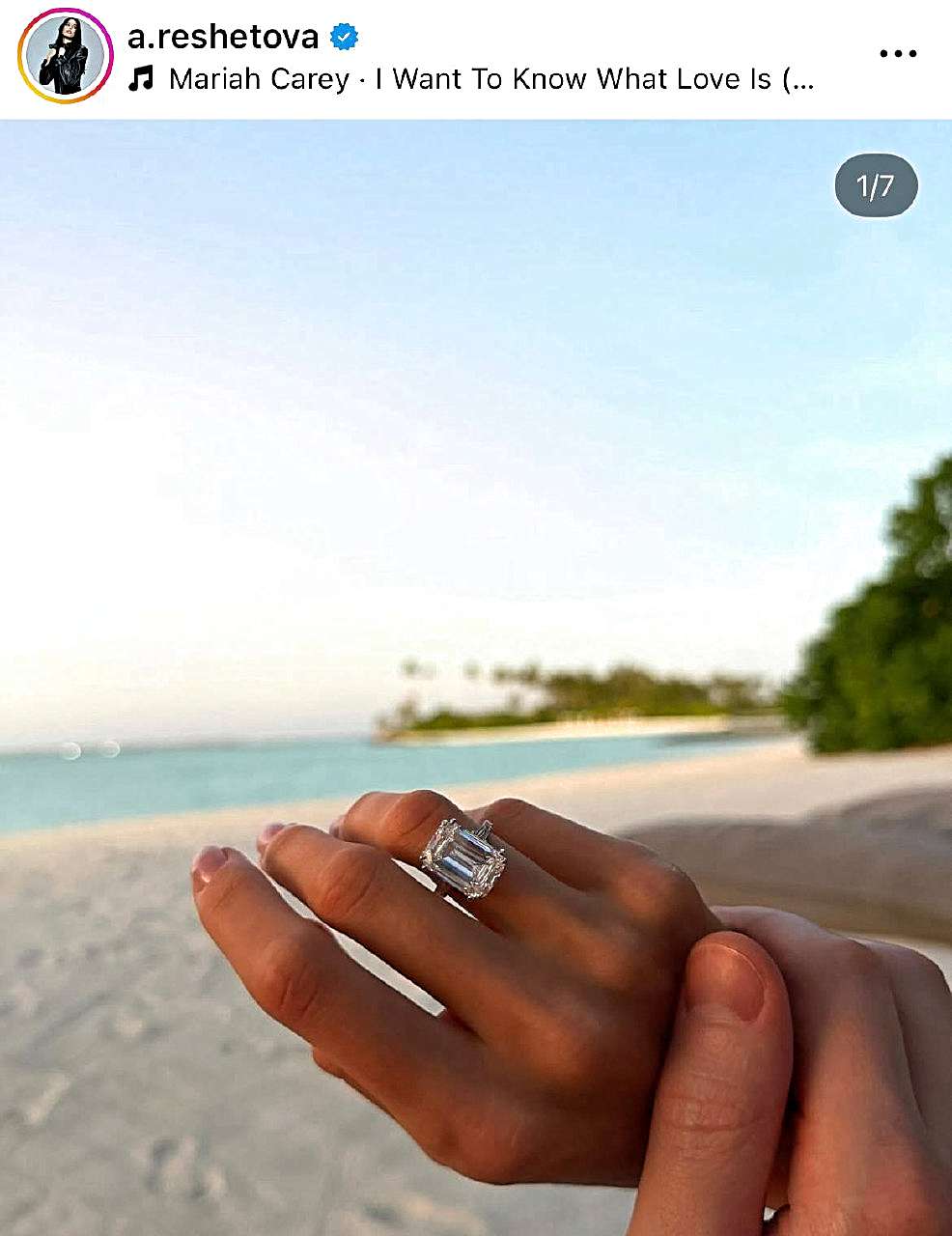 «Да», — лаконично подписала красотка под постами с отдыха, где ей, судя по всему, и сделали предложение руки и сердца. Решетова похвасталась роскошным обручальным кольцом, цену которого пока сложно оценить. Нечего сказать и про возлюбленного Анастасии, ведь его личность неизвестна. Интересно, не боится ли Решетова возобновления слухов о ее романе с бывшим мужем Алсу?