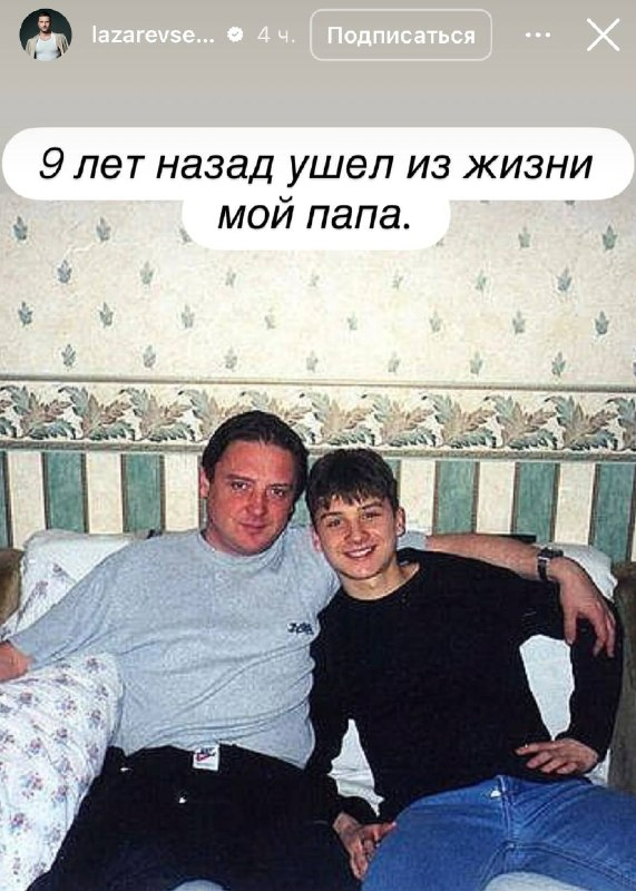 Так, сегодня, 24 марта, Лазарев показал архивное фото со своим отцом, которого не стало несколько лет назад. На снимке еще очень молодой артист запечатлен с папой в домашней обстановке.