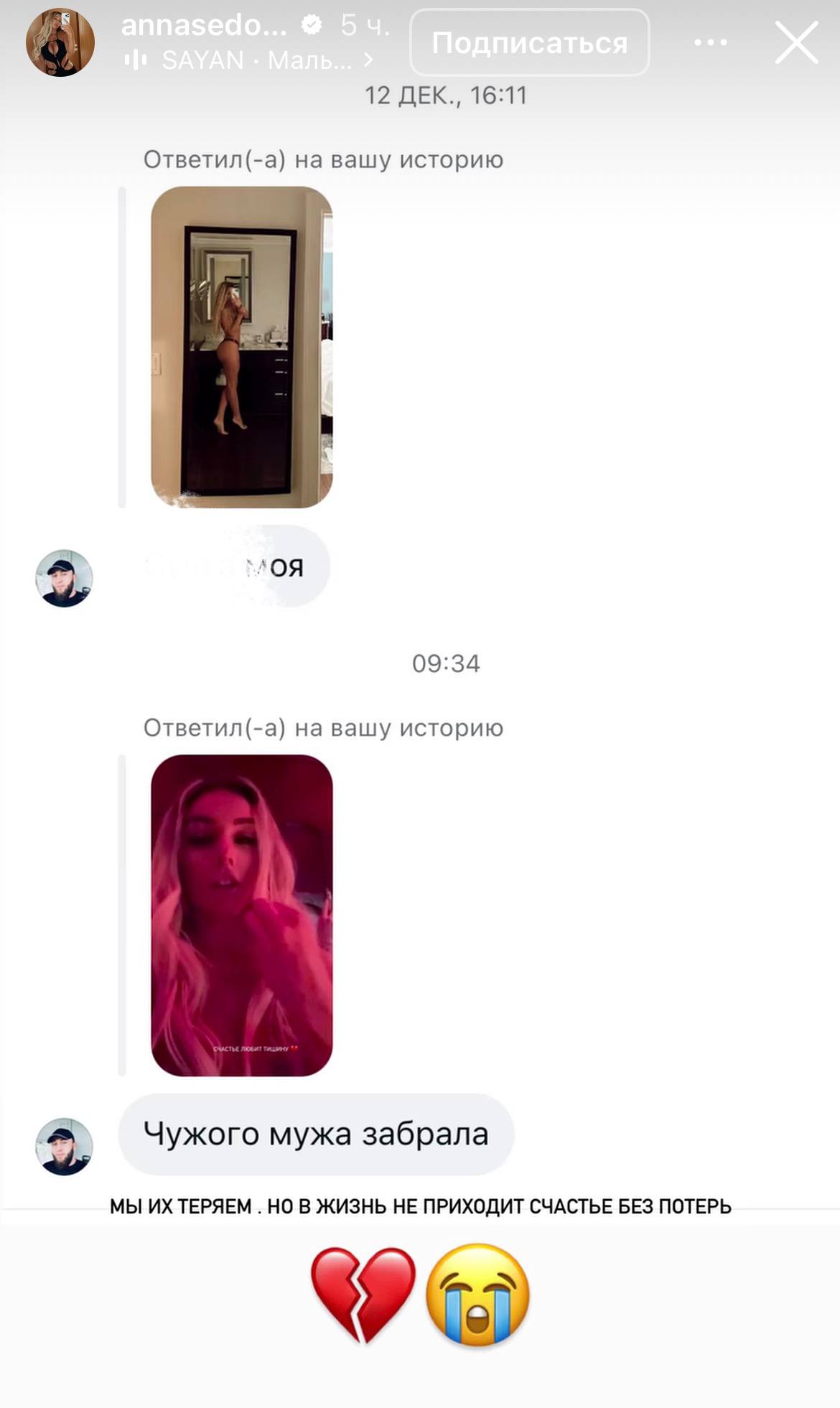 Ожидаемо Анна начала получать резкие сообщения. К примеру, один из пользователей написал Седоковой, что та «чужого мужа забрала» — скриншот с этим обвинением звезда сама выложила в блог. Действительно ли артисты вместе или это попытка Анны отвлечь внимание от судов с семьей покойного Яниса Тиммы из-за имущества, сказать трудно. Зато о вероятном романе уже высказалась Оксана Самойлова. Она благословила Джигана на отношения с Седоковой. Правда, с оговоркой — похоже, звезда допускает, что может пожалеть о разводе с рэпером или просто его заревновать.