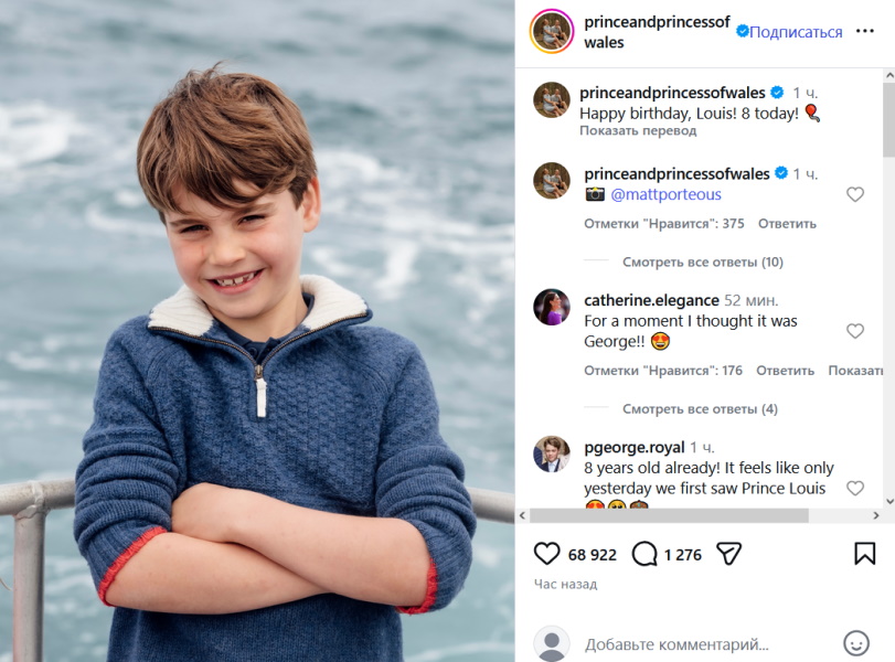 В официальном аккаунте принца и принцессы Уэльских появилась трогательная публикация по случаю дня рождения маленького Луи. На обнародованном фото видно, как сильно подрос мальчик за минувший год. «С днем рождения, Луи! 8 сегодня!» - гласит сообщение. Казалось бы, в этот особенный для всей королевской семьи день родители должны быть рядом со своим ребенком, который с нетерпением ждет гостей и подарков.