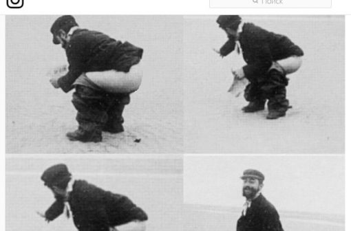 В подписи к фотографии актер отмечает, что снимки художника, во время акта дефекации, сделанные в конце 19 века, были напечатаны в виде открыток и французы рассылали их друг другу по почте.