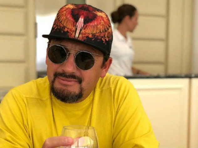 На последнем снимке в соцсети Михайлов сидит за столом с бокалом в руках в желтой футболке, затейливой бейсболке и в темных очках. Подпись к фото краткая: «Доброго дня!».