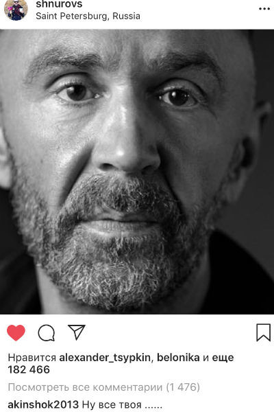 Причиной такого предположения стали неоднозначные комментарии, которые Оксана начала оставлять под публикациями музыканта. К примеру, под одним из черно-белых снимков, выложенным Сергеем в соцсети, Акиньшина написала: «Ну все твоя .....» (авторские орфография и пунктуация сохранены – EG.RU).