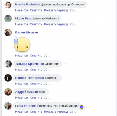 Об этом, в частности, заявили несколько человек в комментариях к , экс-главы украинского союза кинематографистов, в их числе — телеведущая Татьяна Кравченко. Комментарий об онкологии оставила также иллюзионист Наталия Жаворонкова, однако позднее она его удалила.