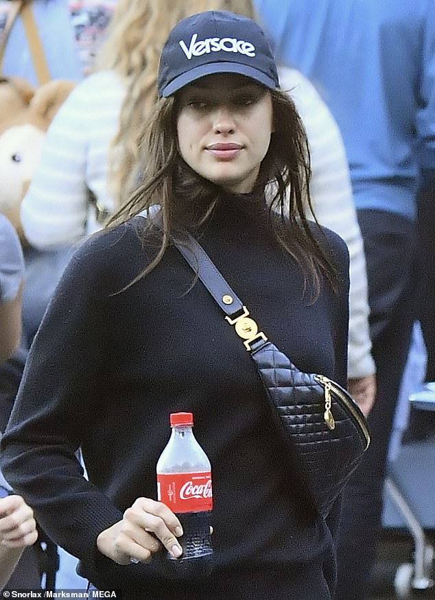 Ирина тем временем выбрала удобный и простой ансамбль, в котором, тем не менее, выглядела роскошно: тонкий черный свитер, джинсы и черные кроссовки. И все та же бейсболка, но с логотипом Versace.