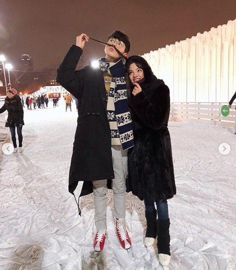 «Теплая зима», - подписала Медведева снимки, на которых позирует вместе с Кристианом на московском катке.