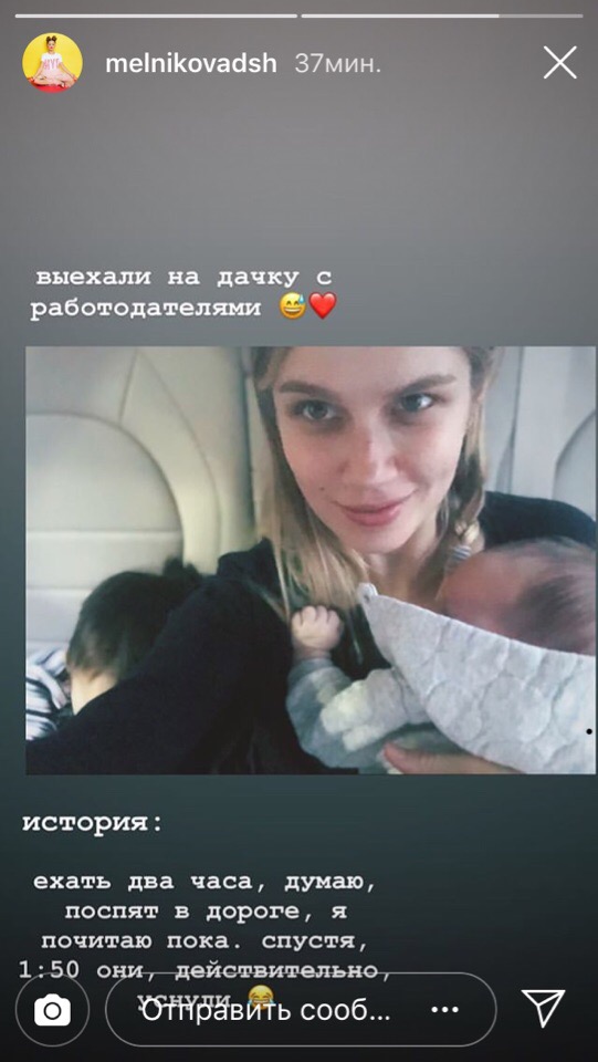 Ранее на странице в Instagram* Мельникова рассказывала, что вторые роды прошли быстрее, но были не менее сложными, че первые. Сейчас, к счастью, все сложности позади, вместе с мужем и детьми Дарья наслаждается семейными времяпрепровождением. Сегодня в Stories Instagram* актриса рассказала, что отправилась на дачу, подкрепив слова милым фото, где на заднем плане запечатлен ее старший сын, а на руках она держит младшего. Малыш сфотографирован сбоку, но так, что его лица не видно.