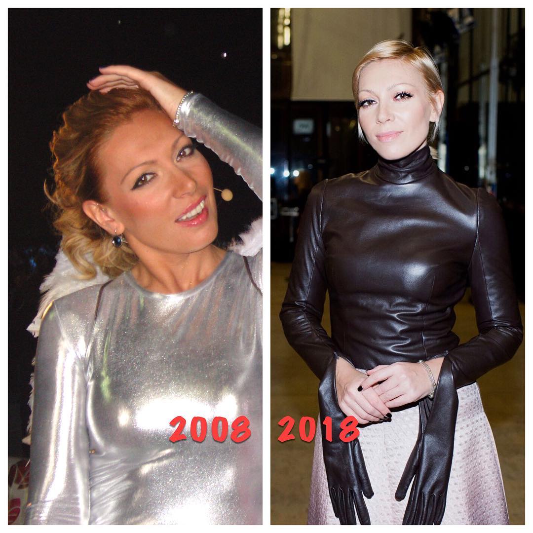 Нетрудно заметить, что Анфиса Чехова и Ляйсан Утяшева с годами постройнели, Алексей Воробьев возмужал, Айза Анохина увлеклась пластикой (светская львица корректировала нос, делала липосакцию, увеличивала ягодицы и грудь, но импланты из первых «90» удалила). Хотя многие селебрити — Аврора, Манучаров, певица Котова — не слишком-то изменились. Что особенно касается Дмитрия Шепелева: на опубликованном им фото он запечатлен в одинаковых позе и одежде, лишь морщин от улыбки на свежем фото больше.