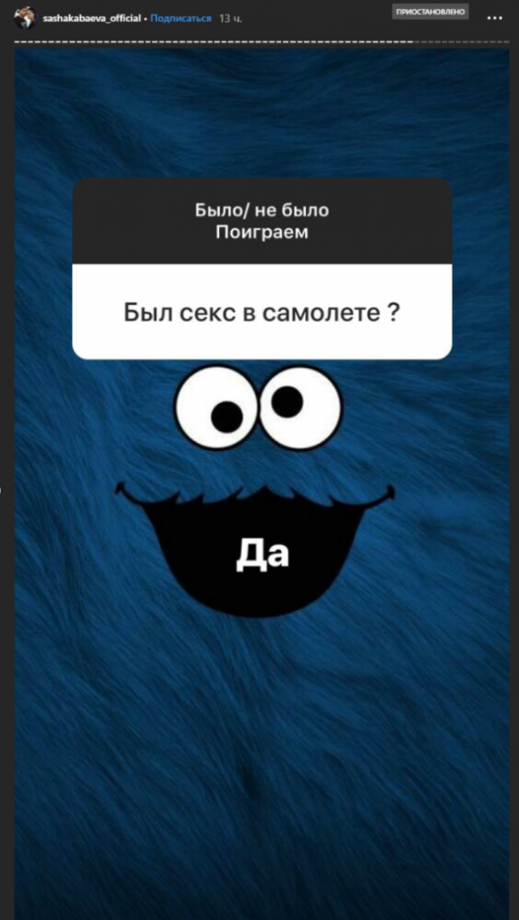 Накануне блогер решила сыграть с читателями в социальной сети в игру «Было/не было». «Был секс в самолете?» — спросил ее один из заинтересованных подписчиков. «Да», — призналась модель.