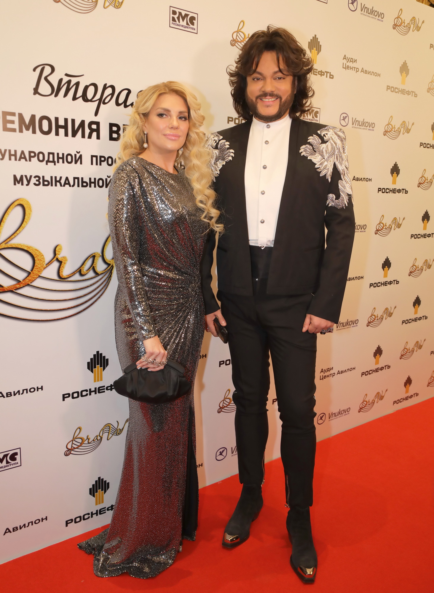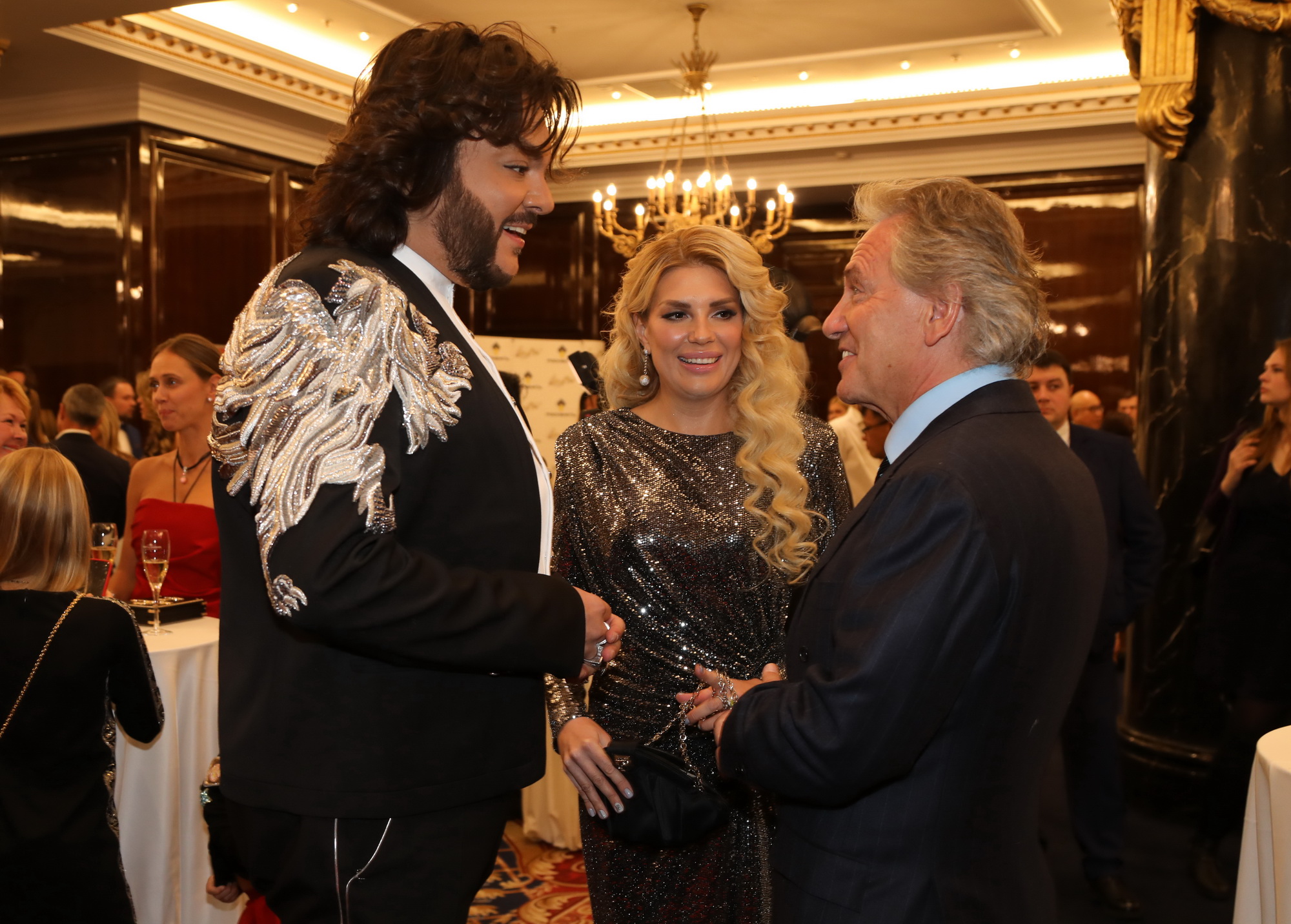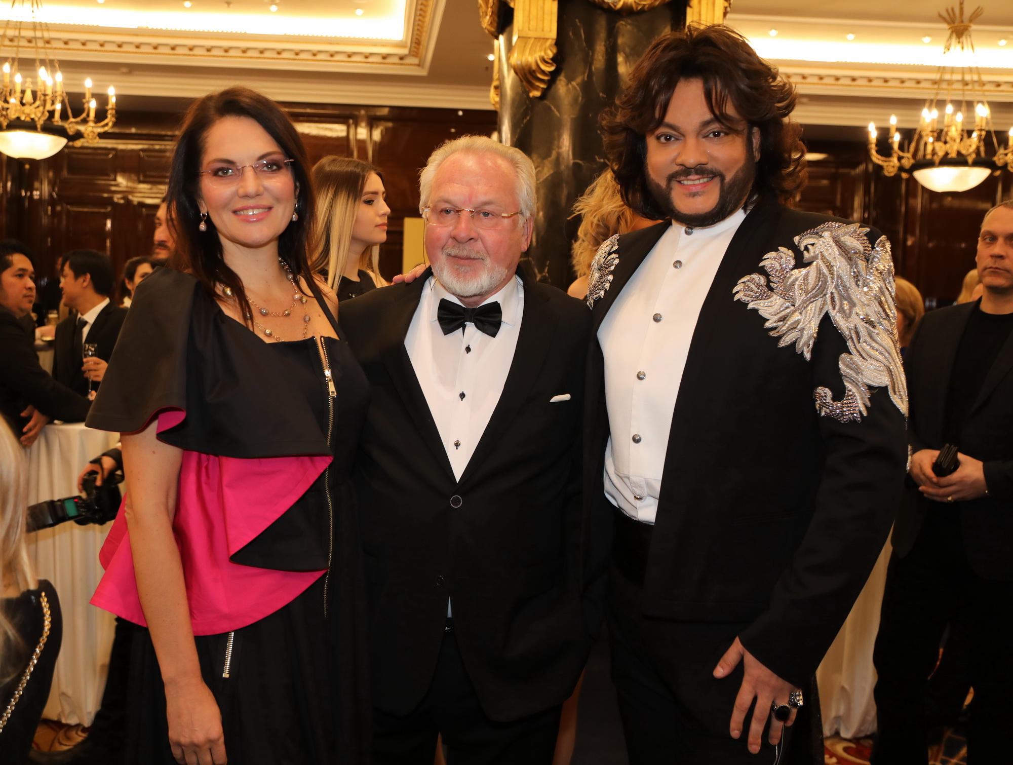 Гостей лично встречали глава Русской медиагруппы Владимир Киселев со своей супругой - актрисой, певицей и продюсером Еленой Север. Присутствовали на вечере и их сыновья - молодые певцы ЮрКисс и ВлаДимир.