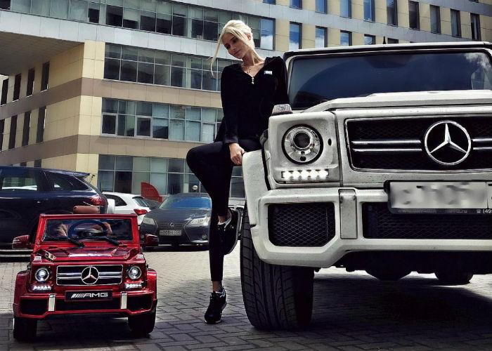 Крошка Алиса уже в два года интересовалась автомобилями — и получила первое собственное транспортное средство задолго до недавнего пятилетия. Девочке тоже достался «Мерседес» — разумеется, маленький, с электродвигателем и в тысячу раз дешевле настоящего, но полностью копирующий машину мамы.