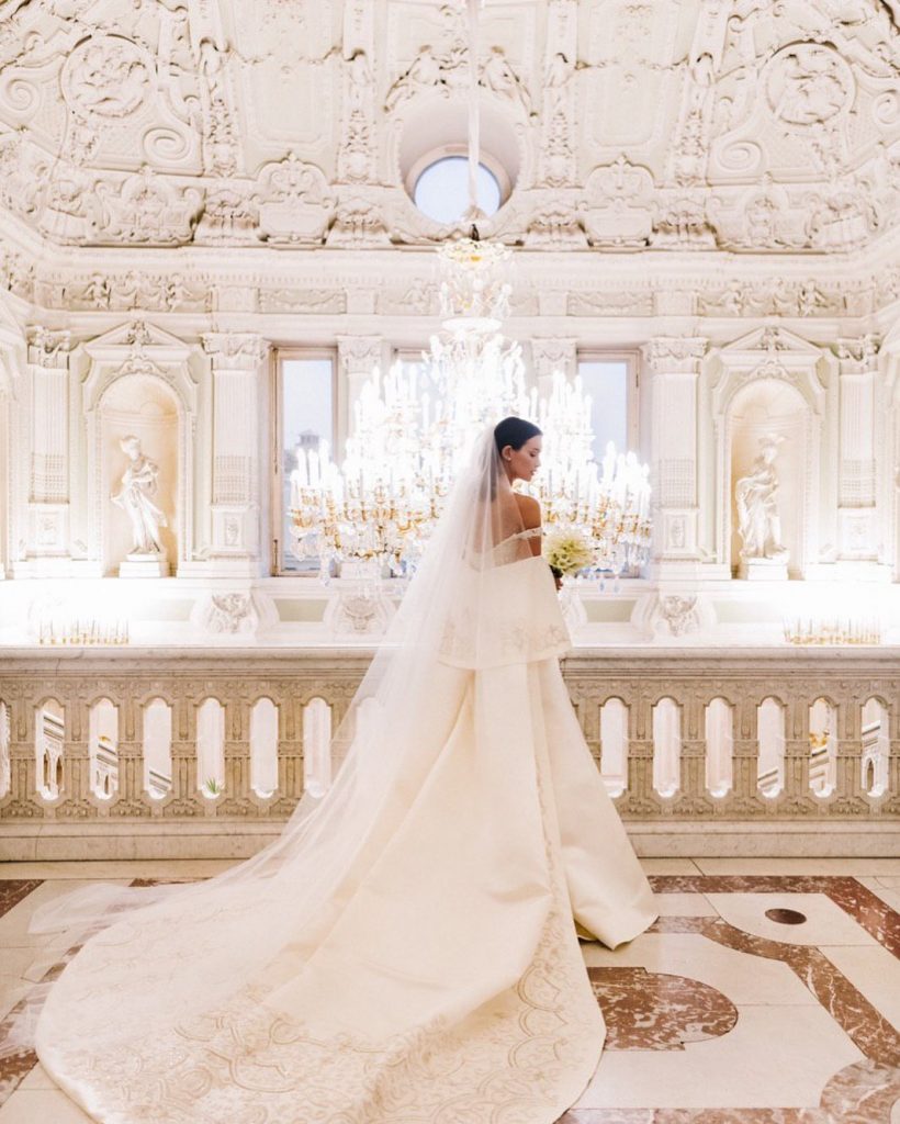 Видимо, Паулина не захотела, чтобы это было ее единственное изображение с женихом, так что спешно опубликовала в инстаграме* фото в свадебном платье от Maison Bohemique. Именно в этом наряде с шикарным шлейфом и длинной фатой Андреева появилась в Юсуповском дворце.
