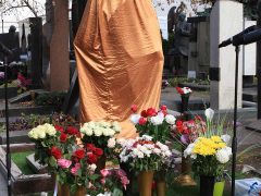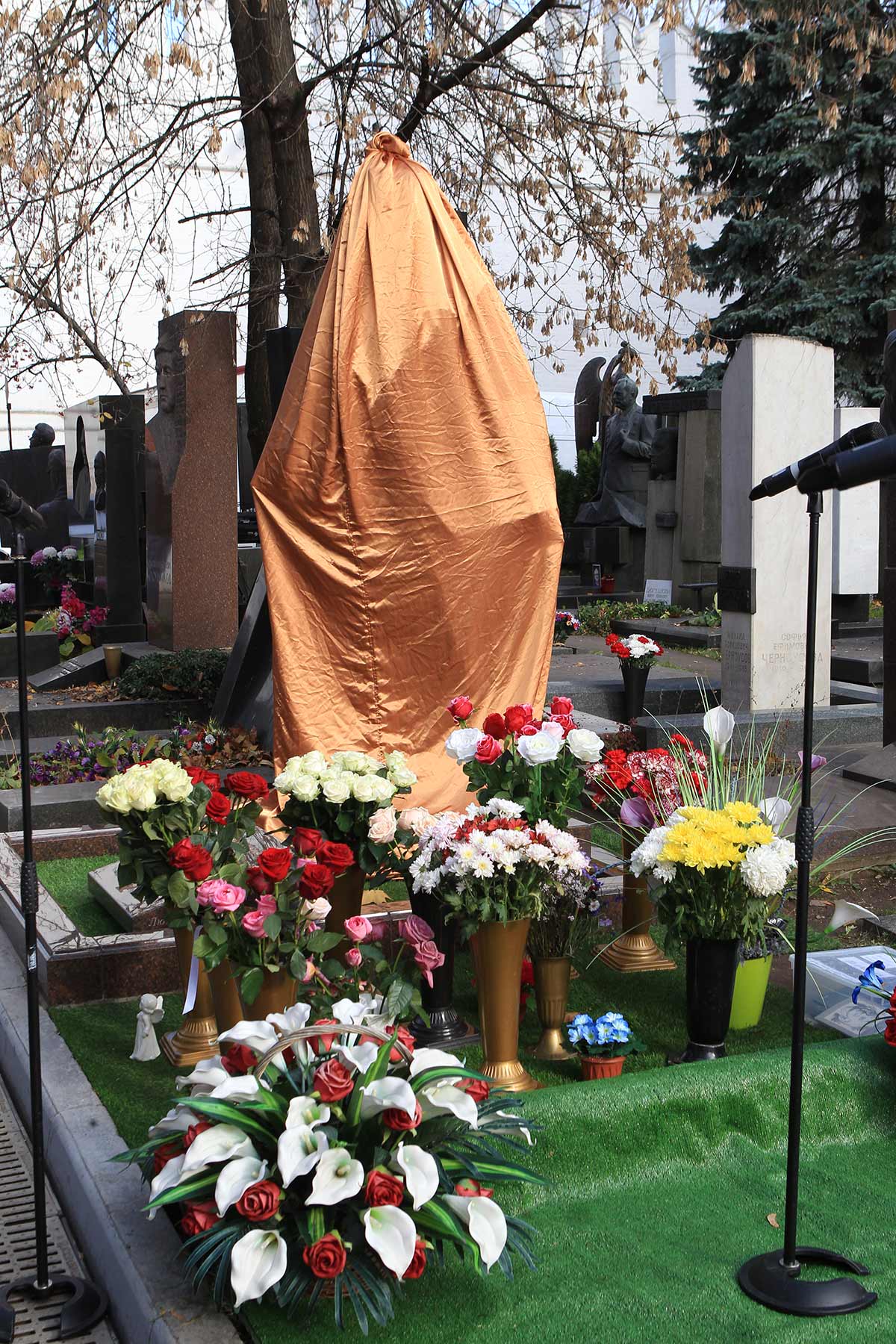 На церемонию открытия памятника в Москве приехала вся семья артиста, собрались его друзья и коллеги. Автором монумента стал заслуженный скульптор России Владимир Усов. Он же создал памятник Хворостовскому в Красноярске. Проект этого надгробия утверждали родители покойного музыканта. Чтобы рассчитаться за памятник сыну, Александру Степановичу и Людмиле Петровне пришлось продать квартиру в российской столице, когда-то подаренную им знаменитым сыном.