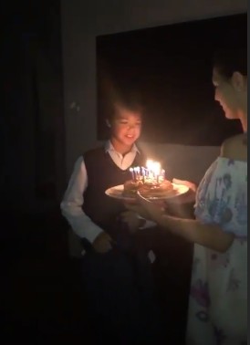 Мама преподнесла мальчику торт (судя по всему, домашний), свечи на котором Матвей радостно задул под всеобщие аплодисменты и поздравления. Но самый главный сюрприз ждал сына актрисы впереди: ему подарили ударную установку. Сдернув с подарка покрывало, подросток начал прыгать от удивления и восторга.