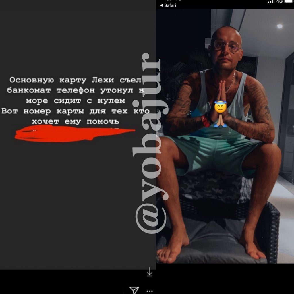 Позже девушка подтвердила, что автором записи является сам Алексей, и разразилась матом в адрес непонятливых поклонников. «Телефон действительно утонул, и Леша без связи. Карта действительно *** в банкомате, и ее не возвращают. Прошлую стори писал лично он и просил о помощи. Нет в этом ничего катастрофического! Это нормально — просить о помощи. Кто кинул — спасибо. Кто хотел, но не смог, — спасибо. А кто устраивает мне ад — отстаньте», — написала сестра исполнителя.