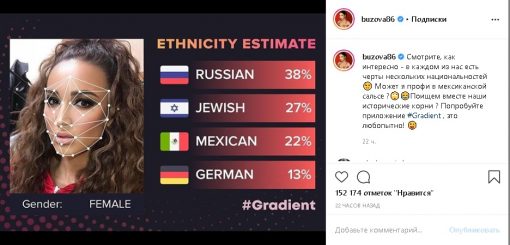 Для определения черт, присущих разным национальностям, используется приложение Gradient, которое оценивает пропорции лица и их соотношение по загруженной фотографии.