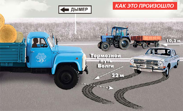 На своей «Волге» он ехал в Киев. Не доезжая нескольких сот метров до поселка Дымер, догнал трактор «Беларусь» с прицепом. Метров за десять, не сбавляя скорости, пошел на обгон и на встречной столкнулся с ГАЗом-53.