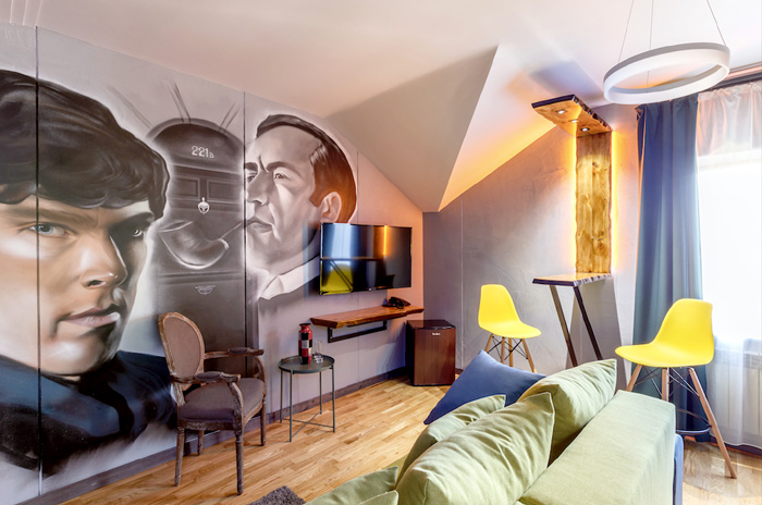 На таких Саша Петров не зацикливается. Да ему и некогда. Теперь у него в жизни не только кино и театр, а еще и отель в родном городе. Проект интересный: все восемь тематических номеров посвящены кино. Фанатеете от Гарри Поттера — вам в его именной люкс (14 500 руб.), для поклонников «Афони», «Бриллиантовой руки» и «Титаника» — улучшенные двухместные стоимостью 10 700 руб. за ночь). В бутик-отеле есть классная сауна, ресторан «Кино и вино» и смотровая площадка, с которой открывается вид на весь Переславль-Залесский, подаривший нашему кино яркого актера Сашу Петрова.