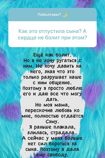 Звезда также добавила, что у нее больше нет сил бороться за сына, и она решила дать ему свободу.