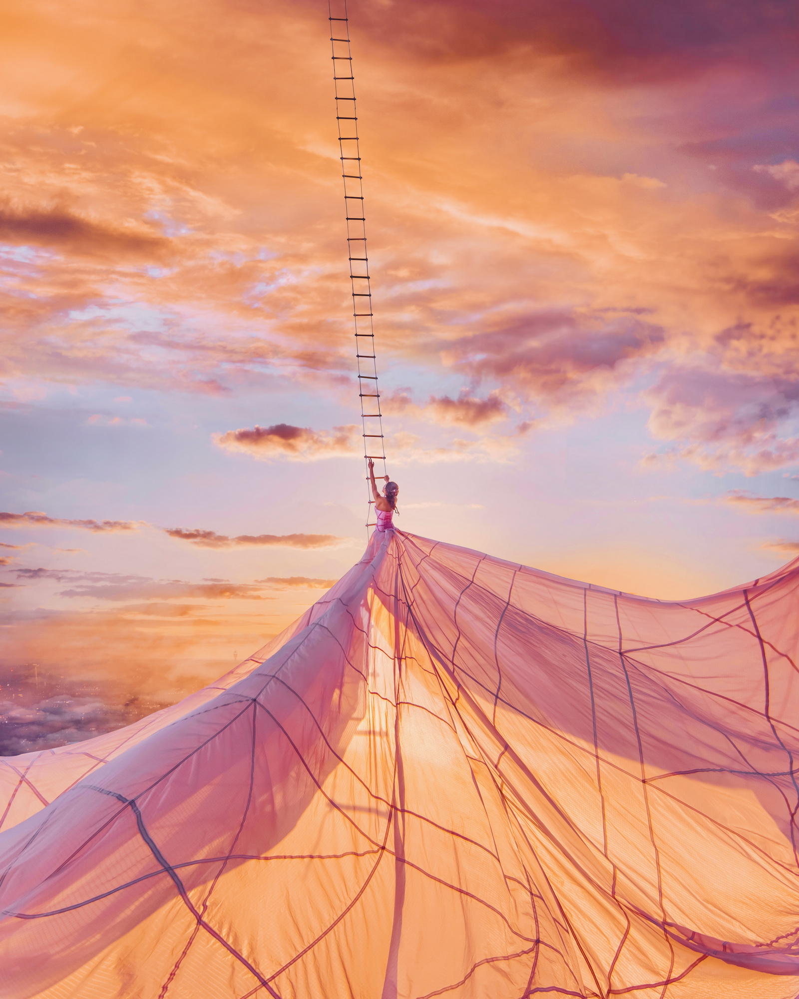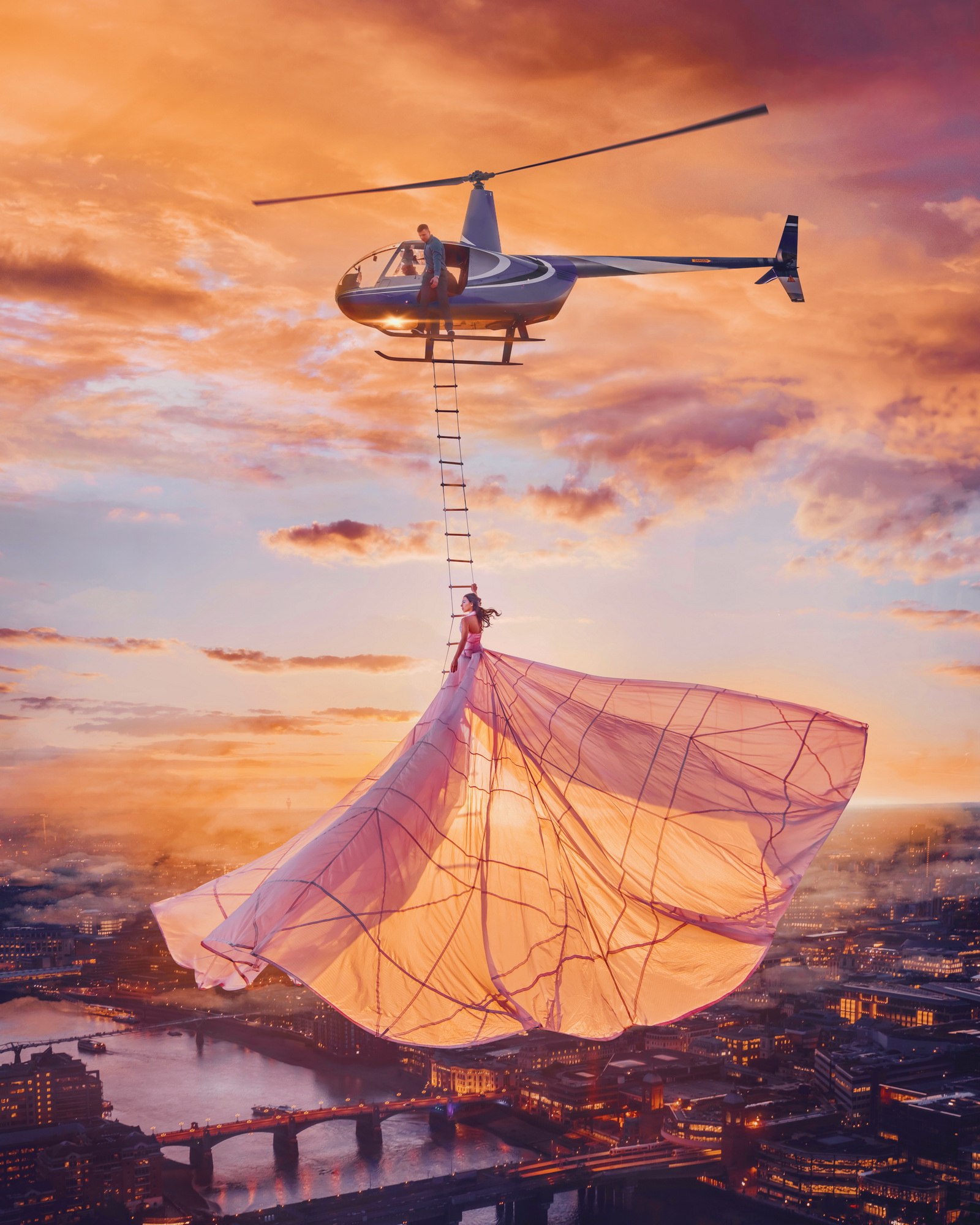 — Это казалось неосуществимым! — рассказывает Валерия Чекалина. — Взмыть в небеса на вертолете, парить в платье-парашюте и взбираться по веревочной лестнице к своему любимому, больше всего в жизни боящемуся высоты! Но два месяца подготовки, планирования, упорства, работа всей команды и любовь к своей работе сделали свое дело!