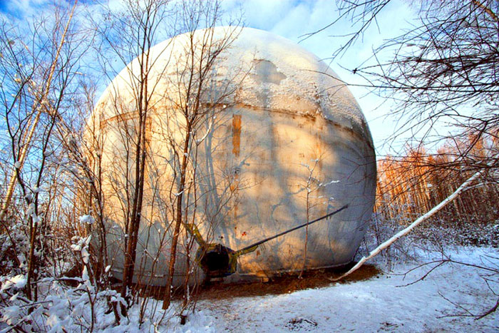 1. Загадочный 18-метровый шар в лесу под Дубной (ориентир - деревня Игнатово). Любой звук внутри многократно усиливается и искажается. Шар, судя по всему, - часть нереализованной научной установки.