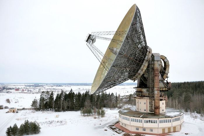 2. Радиотелескоп ТНА-1500 рядом с Калязином. Гигантское устройство, возвышающееся над лесом, легко заметить.