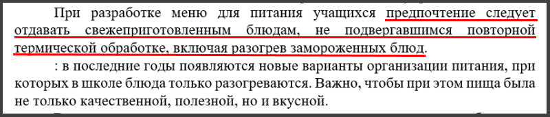 В документе действительно упоминается появление такой технологии, но в качестве замечания. А в качестве требования указывается, что предпочтение должно отдаваться именно свежеприготовленным блюдам, а не размороженным.