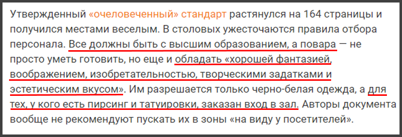 Данный момент является очевидной недоработкой в документе, и мы надеемся, что в будущих редакциях этот нюанс будет раскрыт. Но даже при этом нам не удалось обнаружить заявленного «Фонтанкой» требования к наличию высшего образования у всего персонала.
