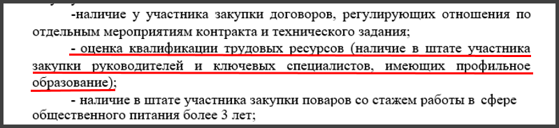 Но на 167 страницах нам не удалось обнаружить ни единого подобного требования. Там отмечено, что при прохождении квалификационного этапа во время проведения торгов на организацию питания участник должен подтвердить наличие у персонала профильного образования, но не высшего.