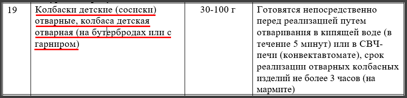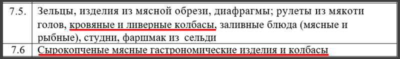 Что же касается списка запрещённых продуктов, то там чётко указано, что речь идёт только о кровяных, ливерных и сырокопчёных колбасах.