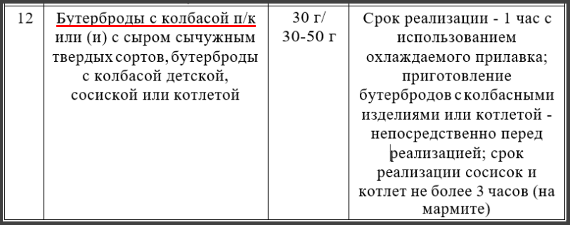 Также бутерброды с колбасой присутствуют и в основном списке для буфетов. Но там речь идёт о колбасе полукопчёной.