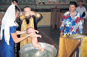 Певец Сосо ПАВЛИАШВИЛИ, как выяснилось, - человек не суеверный. 13 июля в московской церкви на Большой Грузинской в доме 13 артист устроил крестины младшей дочери Сандры. Девочке едва исполнился месяц, но во время обряда она вела себя на удивление спокойно. Владимир ПОЖАРСКИЙ Поздравить друга пришел «комедиант» Гарик Мартиросян с супругой. К сожалению, не смог приехать крестный отец девочки губернатор Тульской области Вячеслав Дудка. «Его задержали важные государственные дела, - сообщил Сосо помощник политика. - Но он просил передать своей крестной подарок!» Губернаторский посланец протянул бархатную коробочку, в которой лежал серебряный крестик с бриллиантами, освященный в Иерусалиме. После ритуала вся компания отправилась праздновать в грузинский ресторан «Сам пришел». По поводу числа «13» Сосо ответил просто: - Я верующий человек, но не суеверный! Потом, даже если крестить мою любимую Сандру в другой день, то номер дома все равно не поменяется. А истинно грузинских церквей в Москве, по-моему, больше и нет... Хорошо хоть эту – Георгиевскую вновь открыли. Здесь ведь после революции устроили техникум. Видите, внутри еще не все фрески восстановлены...