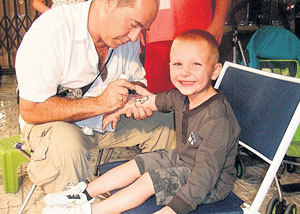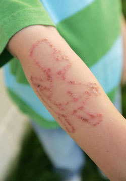 Маленький британец Винни Ингленд из-за безалаберности матери на всю жизнь приобрел шрам в виде героя сериала «Симпсоны» - Барта. Временную татуировку хной мальчик выпросил, когда отдыхал с мамой в Испании. Рисованные татушки там делают прямо в уличных палатках. Родительница поддалась на уговоры, и вскоре руку Винни украсил заветный рисунок. Радость длилась недолго: через несколько часов у мальчика началось жуткое раздражение. Кожа вокруг рисунка покраснела и пошла волдырями, рука опухла и буквально горела огнем. Ребенок кричал от боли несколько часов, пока мать металась по отелю в поисках врача. Оказалось, что уличный татуировщик использовал хну, смешанную с краской для волос - именно на нее у ребенка началась аллергия. Теперь с Винни все в порядке - краска уже смылась, но на руке остался шрам, повторяющий контуры рисунка. Впрочем, сам пацан не переживает: иметь шрам в виде Барта Симпсона кажется ему очень крутым.
