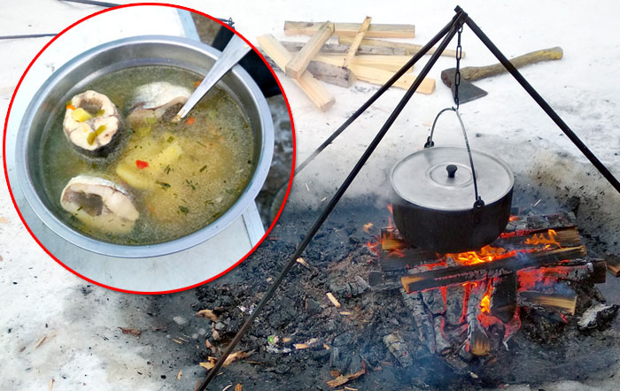 Это популярное у туристов развлечение: лежа на льду, выпить из лунок алкоголь или сок. Звучит захватывающе, но вот такие случаются казусы. Зато уха, сваренная в котелке на костре, разведенном прямо на льду, всегда имеет успех. Такой обед обычно включен в экскурсию по льду Байкала, и нагулявшиеся на морозе туристы сметают по две порции.