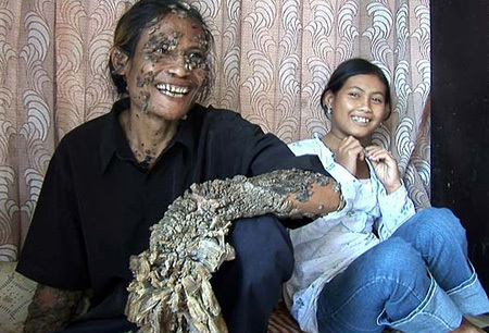 Новость о рыбаке Деде с острова Ява, чье тело покрывают уродливые наросты, похожие на кору дерева, облетела мир в самом начале 2008 года. Ряд публикаций позволил читателям следить за судьбой несчастного: благодаря помощи американского врача сейчас он уже частично избавился от «украшения», может самостоятельно ходить и держать авторучку.
