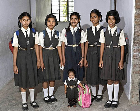 Рост 15-летней индианки Йоти Амге всего 33 сантиметра. Девочка учится в обычной школе вместе со своими «большими» сверстниками и не считает себя обиженной судьбой. - Когда я окончу школу, то поступлю в институт искусств и буду учиться на актрису, - мечтает «Дюймовочка».