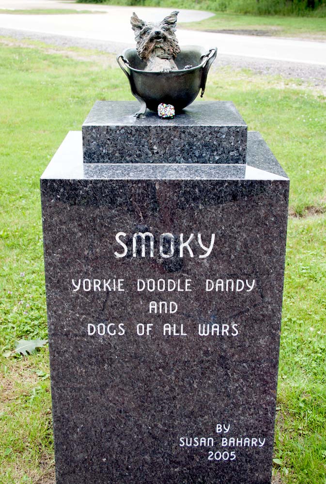 В феврале 1944-го в заброшенном окопе в джунглях Новой Гвинеи американские солдаты обнаружили йоркширского терьера. Крошку взял капрал Уильям Винн и назвал Смоки (Дымка). Служба на островах была тяжелой: жара, тропические болезни и бомбежки. Официально йорк участвовал в 12 боевых операциях, сидя в рюкзаке хозяина, когда вокруг свистели пули. Собачка пережила не менее 150 авианалетов. И удостоилась восьми «Звезд за службу». Хозяин рассказывал, что Смоки предупреждала о приближающихся самолетах и несколько раз спасала ему жизнь. А однажды помогла проложить кабель под военной базой: катушку повесили ей на спину и запустили в трубу. Но главная доблесть храброго йорка - веселье. Смоки легко обучалась трюкам. Ходила с завязанными глазками по канату, делала сальто и даже прыгала с миниатюрным парашютом с высоты в 10 метров, отвлекая солдат от боли и мрачных мыслей. После войны собачка объехала с капралом Винном всю Америку и даже снялась в кино. При этом йорк продолжал нести службу - навещал ветеранов в госпиталях. Смоки умерла в 1957 году, в 14 лет. Ее похоронили в коробке из-под патронов 30-мм времен войны. В 2005-м на кладбище появился памятник: собачка-крошка в солдатском шлеме.