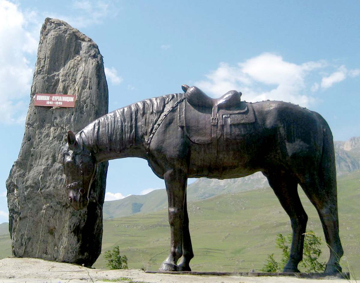 «Плачущий конь» - так называют памятник близ села Верхний Фиагдон (Северная Осетия - Алания), открытый 9 мая 1971 года. Он посвящен выходцам из Куртатинского ущелья, погибшим на войне. Конь, чье седло навсегда опустело без наездника, склонил голову. Автор скульптуры Даурбек Цораев на всю жизнь запомнил, как на войну ушел его старший брат.